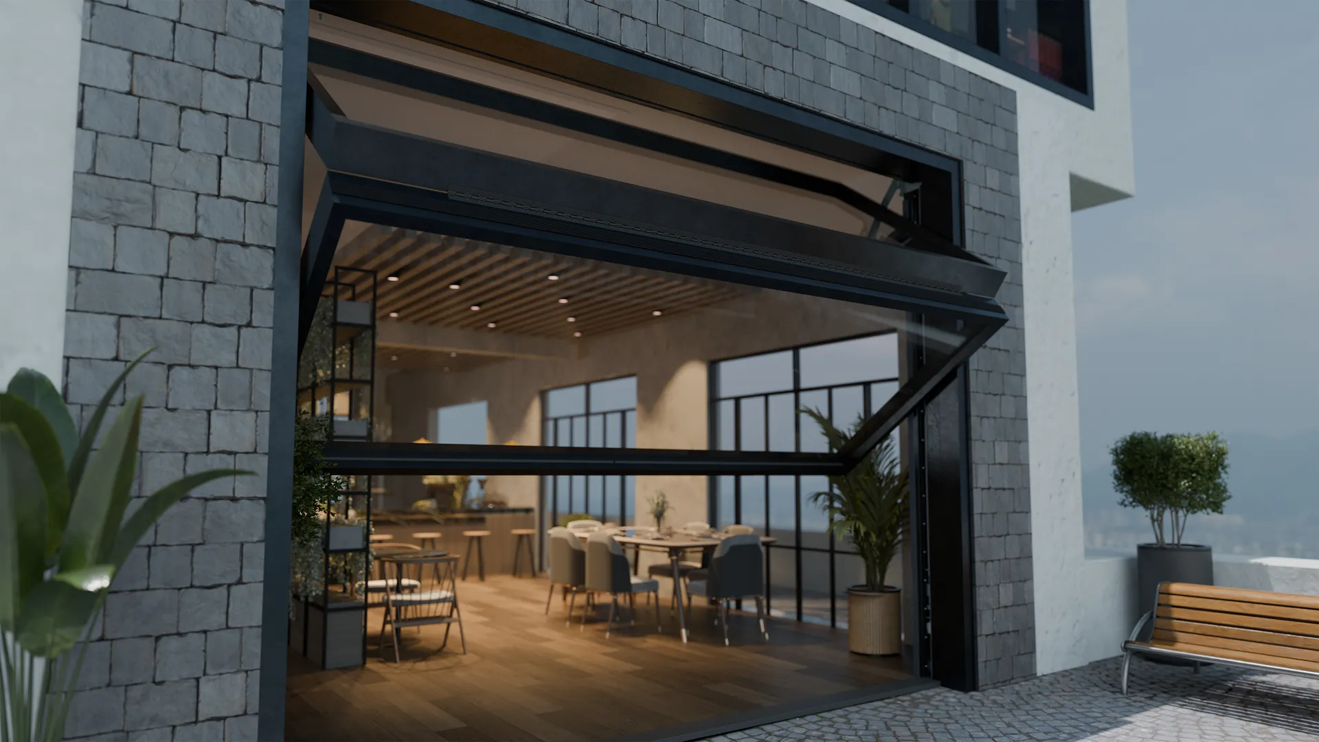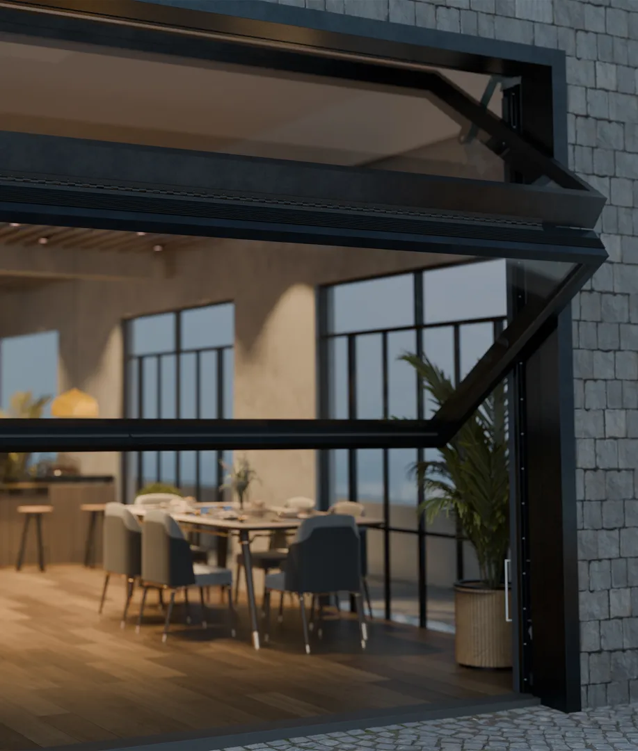 The BiFold System is especially popular in restaurants and cafés. It can also be integrated into public buildings or private homes, making a bold architectural statement.
