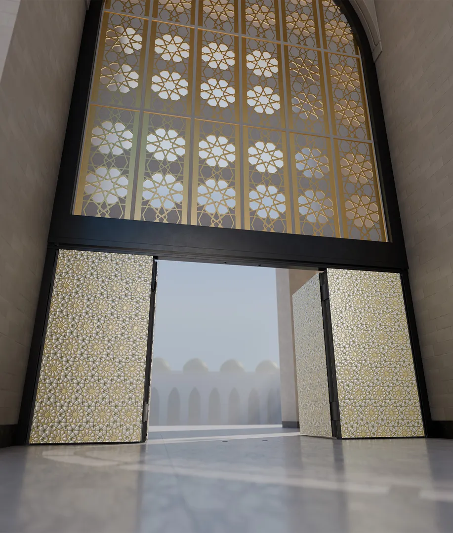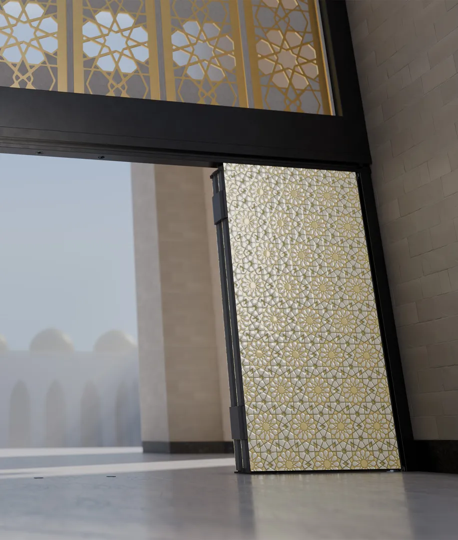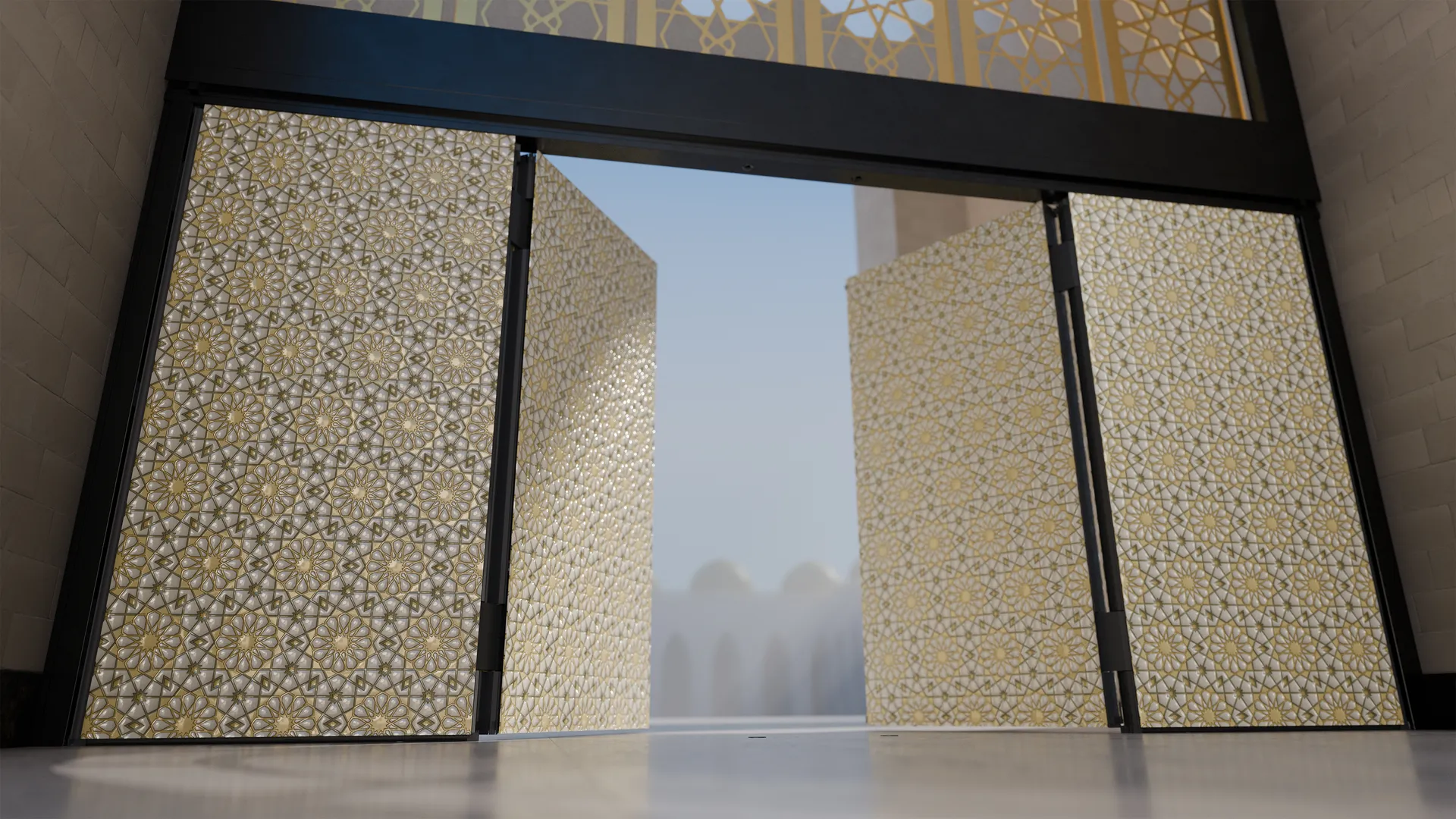 Perfectly adaptable to different situations, the gate can be stopped at multiple positions: First, it opens 90 degrees - ideal for visitor flows; then the opening expands to 180 degrees - the gate folds completely; in the third step, the wings rotate another 90 degrees - now the full passage width is available. Integrated locking mechanisms ensure maximum stability even under the highest wind loads. An integrated pressure plate extends the seals seamlessly along the sides, top, bottom, and between the panels - providing absolute protection. High-grade stainless steel prevents corrosion.